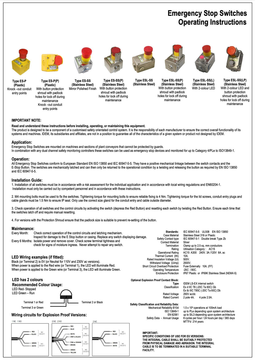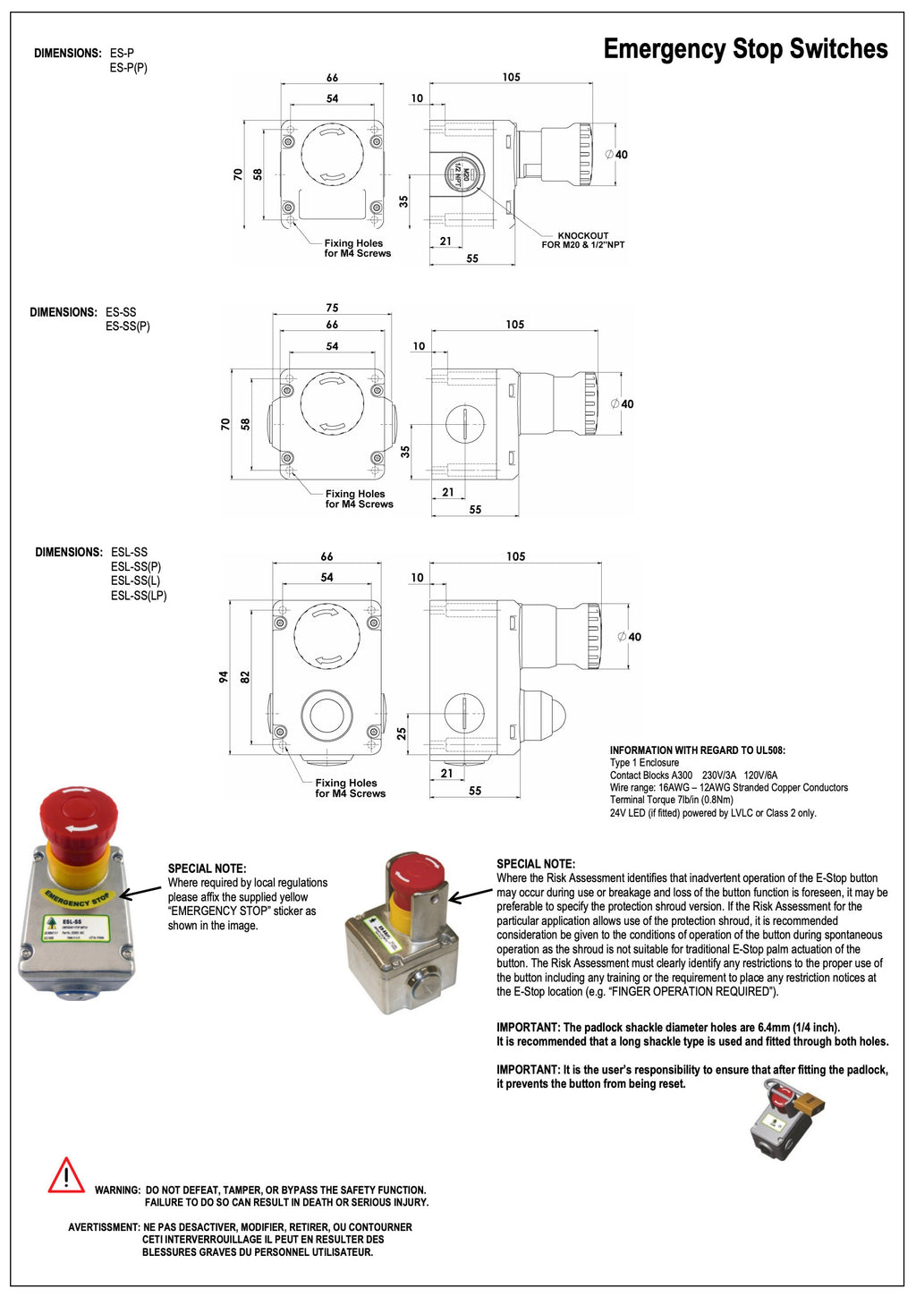 Emergency Stop Device 3-Pole Contacts in Stainless Steel (ES-SS)