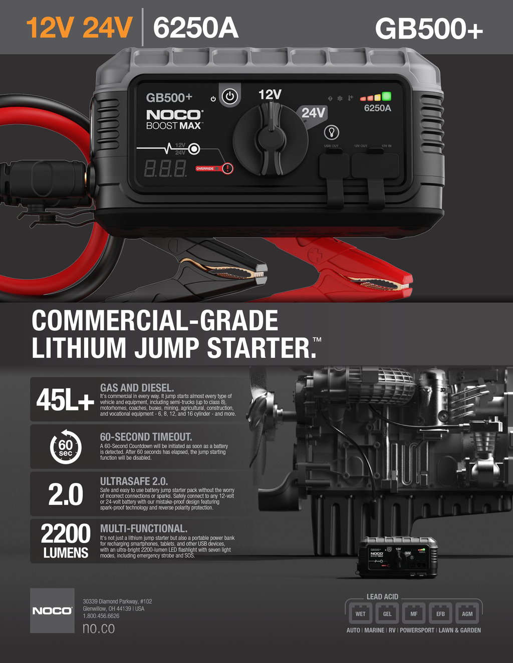 Safely Jump Start A Dead Battery In Seconds. For High-Displacement Gas And Diesel Engines In Trucks, Semis, Buses, HGV, Fleet, Commercial Vehicles, Construction Equipment And More.