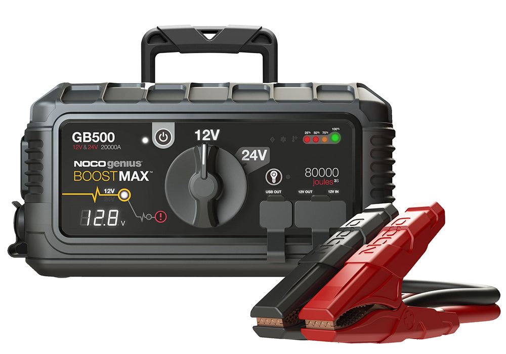 The Boost Max is the next generation of portable lithium jump starters. Engineered from the ground up, the Boost Max is one of the most powerful and innovative jump starters on the market. Designed for both 12-volt and 24-volt gas and diesel engines in Class 8+/CE high-displacement vehicles and equipment, the Boost Max is 400-percent smaller and lighter than its closest lead-acid equivalent. And it features our patented safety protection for spark-proof technology and reverse polarity protection, as well as the confidence to power your favorite devices ranging from smartphones to tire pumps. Ultra-safe, compact, and portable lithium-ion jump starter for both 12V and 24V battery systems. Features patented spark-proof technology and reverse polarity protection. Built for gas and diesel engines in Class 8+/CE high- displacement vehicles, equipment, trucks, and more. Safe for engines of all sizes. Provides remote power for 12V devices (e.g. tire pumps) and recharges mobile devices, like smartphones, tablets and more.